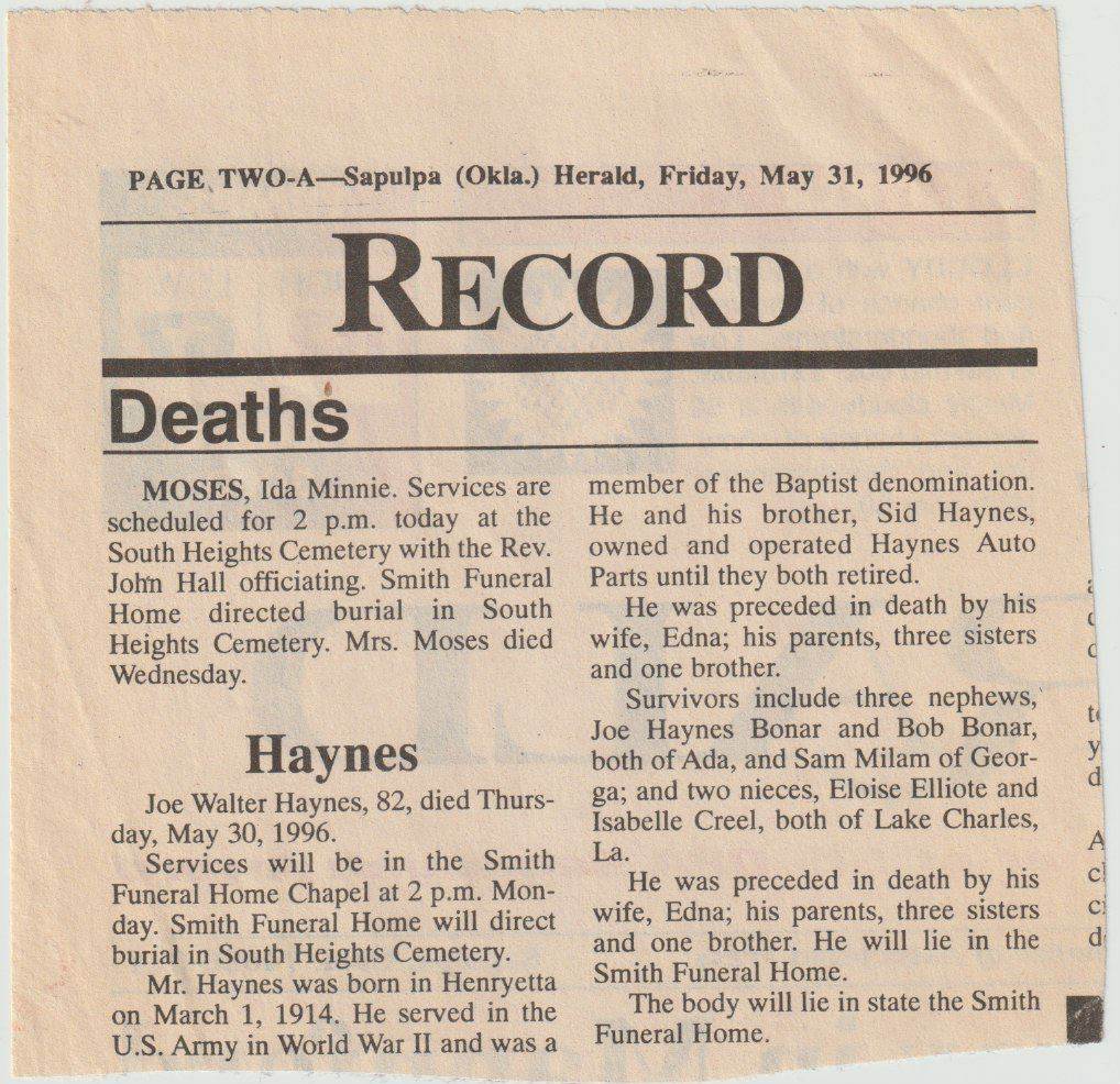 Born February 29, 1914 or March 1, 1914 at Henryetta, Oklahoma
